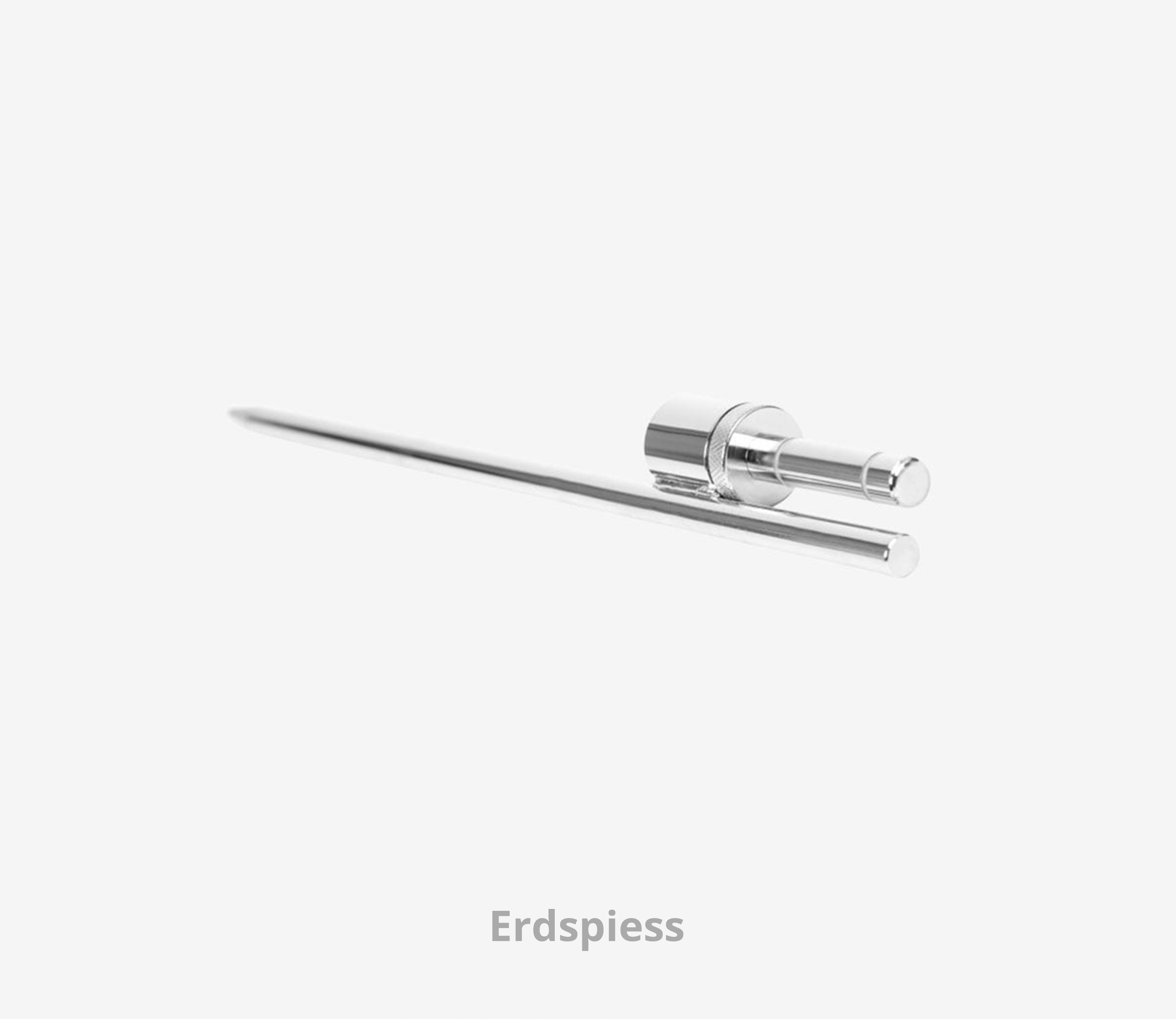 - Erdspiess: Geeignet für Aussenbereich, stark verdichteter Boden